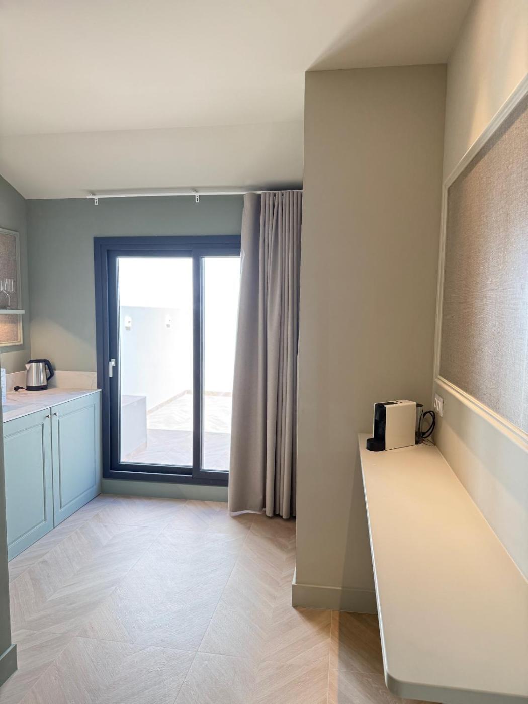 Suite con terraza. The hot tub and spa bath are the special features of this suite. This air-conditioned suite includes 1 living room, 1 separate bedroom and 1 bathroom with a shower. In the fully equipped kitchenette, guests will find a refrigerator, kitchenware, a microwave and a tea and coffee maker. Boasting a terrace with city views, this suite also offers a minibar and a flat-screen TV. The unit has 1 bed. ;