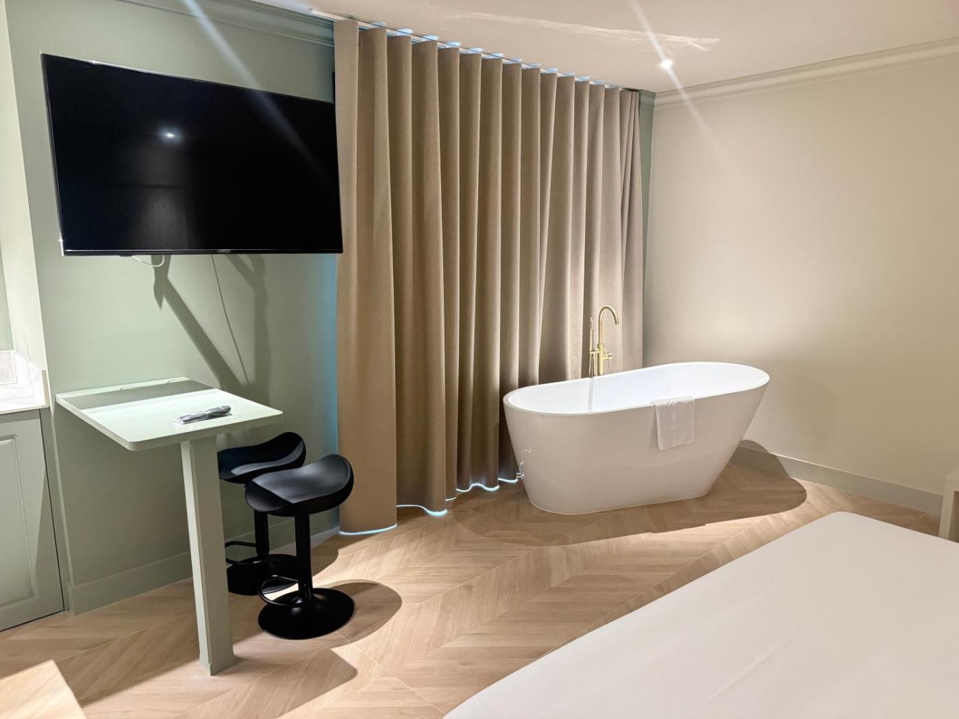 Habitación Doble Deluxe con bañera. The hot tub and spa bath are the special features of this double room. The spacious double room features air conditioning, a minibar, as well as a private bathroom boasting a shower and a hairdryer. In the well-fitted kitchenette, guests will find a refrigerator, kitchenware, a microwave and a tea and coffee maker. This double room has a wardrobe, heating and a flat-screen TV. The unit has 1 bed. ;