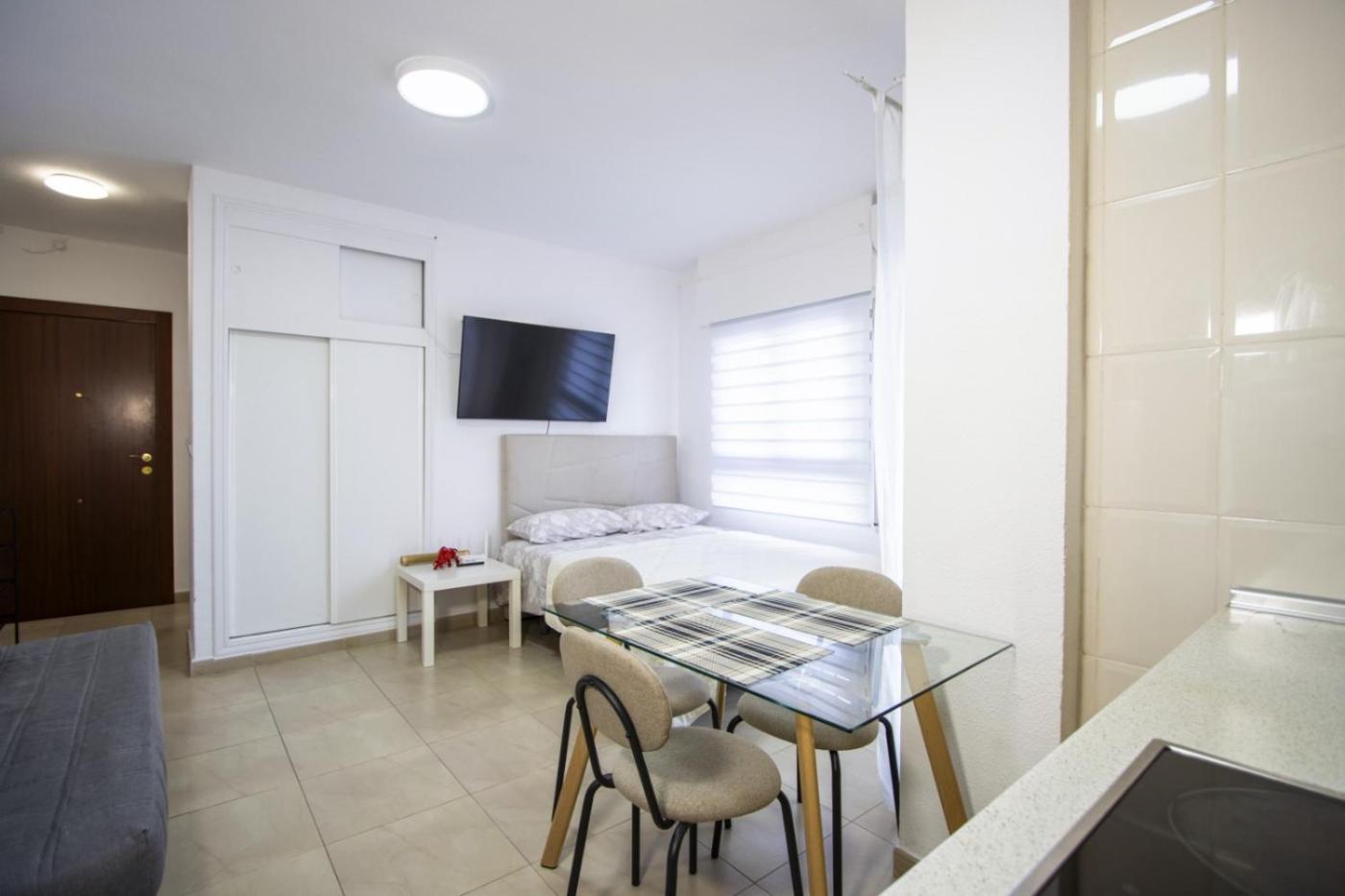 Estudio. The studio features air conditioning, a washing machine, as well as a private bathroom boasting a shower and a hairdryer. In the fully equipped kitchen, guests will find a refrigerator, kitchenware, a microwave and an electric kettle. This studio provides heating and a TV.