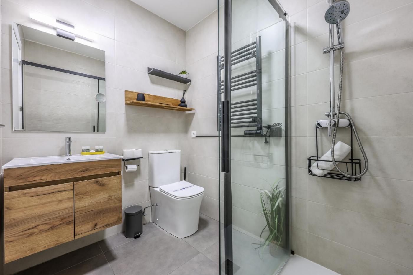 Apartamento de 1 dormitorio. This air-conditioned apartment includes 1 living room, 1 separate bedroom and 1 bathroom with a shower. In the well-equipped kitchen, guests will find a stovetop, a refrigerator, a dishwasher and kitchenware. Boasting a terrace with garden views, this apartment also offers a washing machine and a flat-screen TV. The unit has 2 beds.